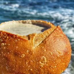 This review is only for the takeout stand in front. It's solid! I stop by whenever I'm in the area. I always get the clam chowder in a sourdough bread bowl, which is served separately so if you need to travel a bit, the bread won't get all soggy. The chowder is thick and chunky. The fish and chips are solid too, where the breading on the fish is somehow light and airy if you eat it right away. This last time I got the shrimp and crab sandwich, which comes with fries. It was only okay, the roll was a little burned so maybe it got left toasting for a tad too long. A lot of people hunker down in front of the restaurant and dive into their food, or you can take the stairs down to the beach and eat it there.